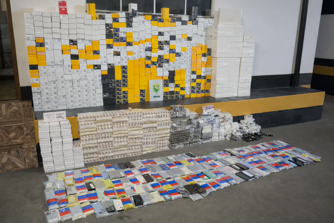 No interior do automóvel, estavam dois homens. Após vistoria, os policiais localizaram diversas caixas contendo medicamentos de origem estrangeira e produtos eletrônicos. Entre os itens apreendidos estavam 7.000 ampolas de tirzepatida, 505 ampolas de anabolizantes, 67 caixas de peptídeos e 935 unidades de eletrônicos variados.