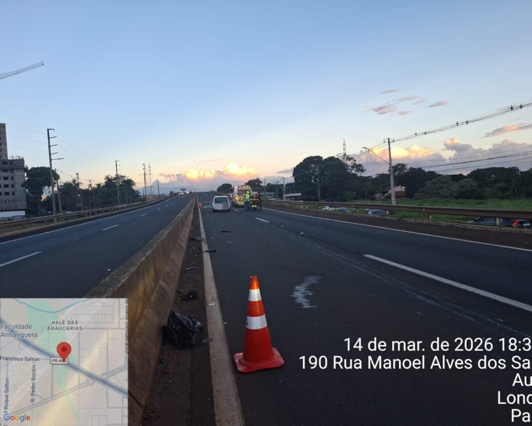 Um pedestre morreu após ser atropelado na rodovia PR-445, em Londrina, no norte do Paraná, no fim da tarde deste sábado (14). O acidente foi registrado por volta das 17h30, na altura do quilômetro 72 + 300 metros da rodovia estadual.