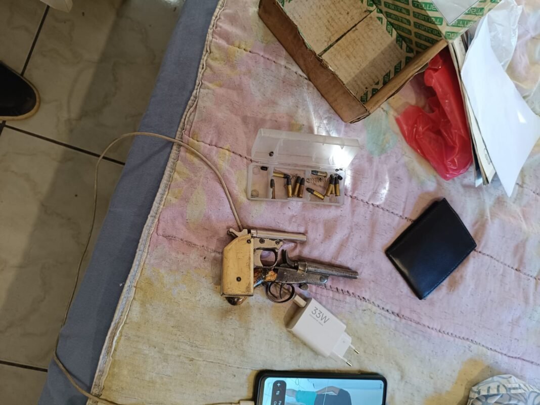 Durante as diligências, foram encontradas duas armas de fogo do tipo garrucha e 10 munições de calibre nominal .22, além de uma motocicleta com placa adulterada. O homem foi preso em flagrante e encaminhado ao sistema penitenciário.