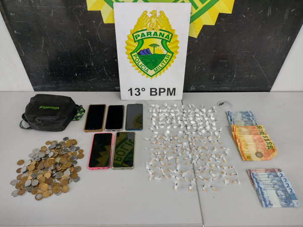 Após a abordagem, foi constatado que o pacote continha drogas semelhantes à cocaína e ao crack. A operação resultou na apreensão de 84 porções de crack, 56 porções de cocaína, uma quantia em dinheiro e cinco aparelhos celulares.