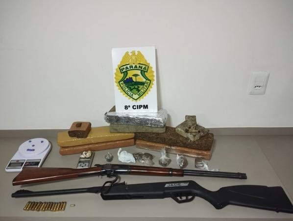 A operação resultou na apreensão de 7,146 kg de maconha, 10,5 g de crack, 15,9 g de haxixe, seis comprimidos de ecstasy, duas balanças de precisão, uma carabina calibre .38 e uma carabina de pressão modificada para calibre .22, demonstrando o esforço contínuo da PM no combate ao crime na região.
