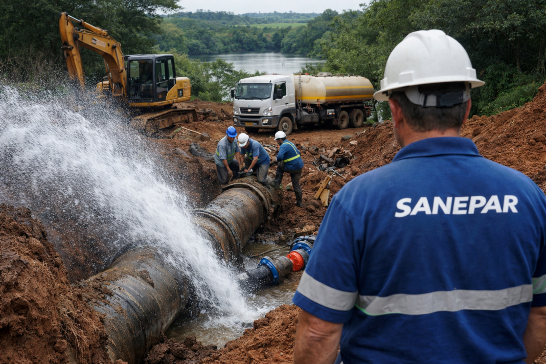 A Sanepar informou que o abastecimento de água em Borrazópolis está prejudicado nesta quinta-feira, 12 de fevereiro de 2026, devido ao rompimento de uma adutora de água bruta no sistema de captação do Rio Laranja Doce.